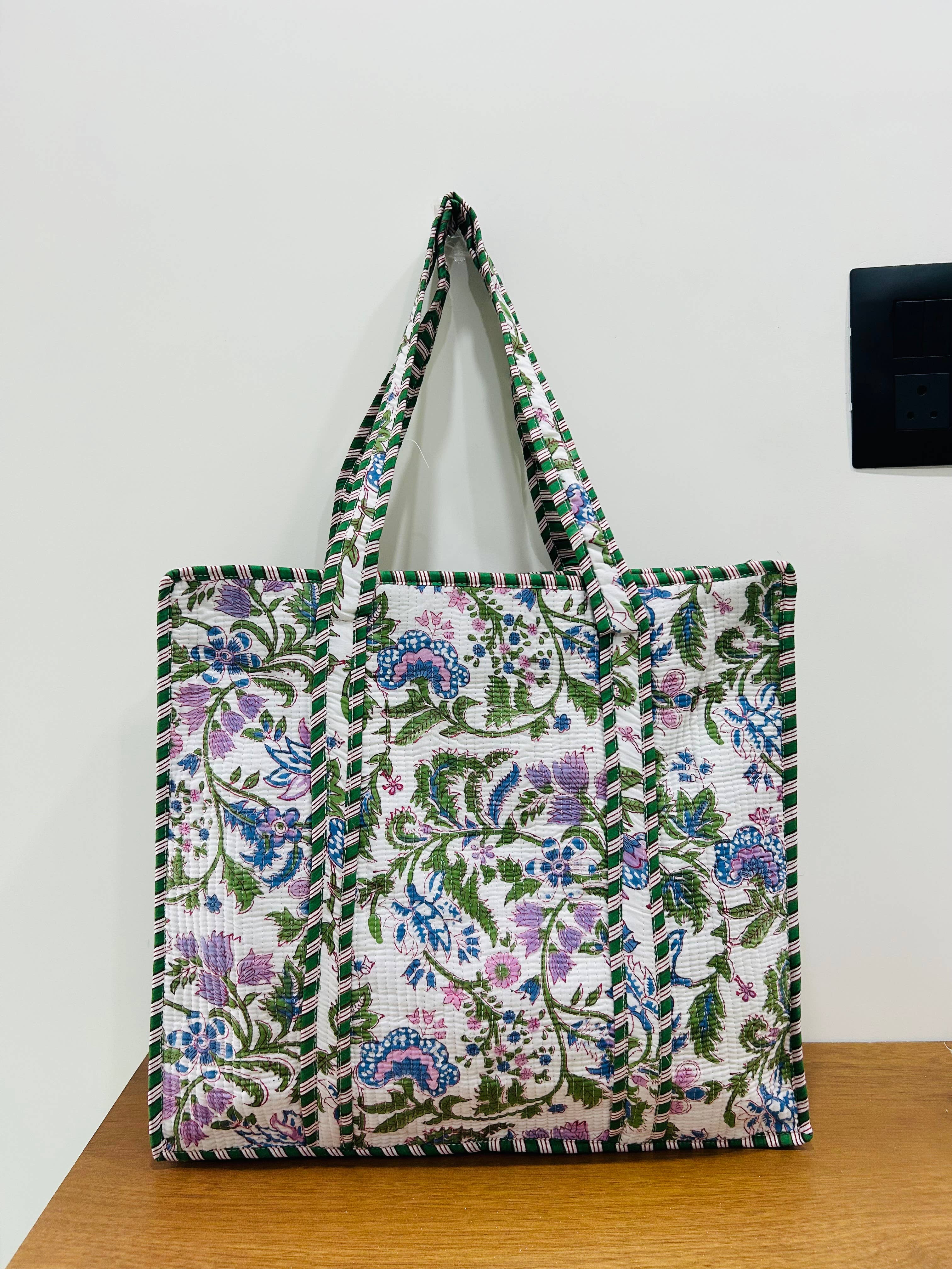 Floral Cotton Quilted Block Print Tote Bag-Beach Bag totes