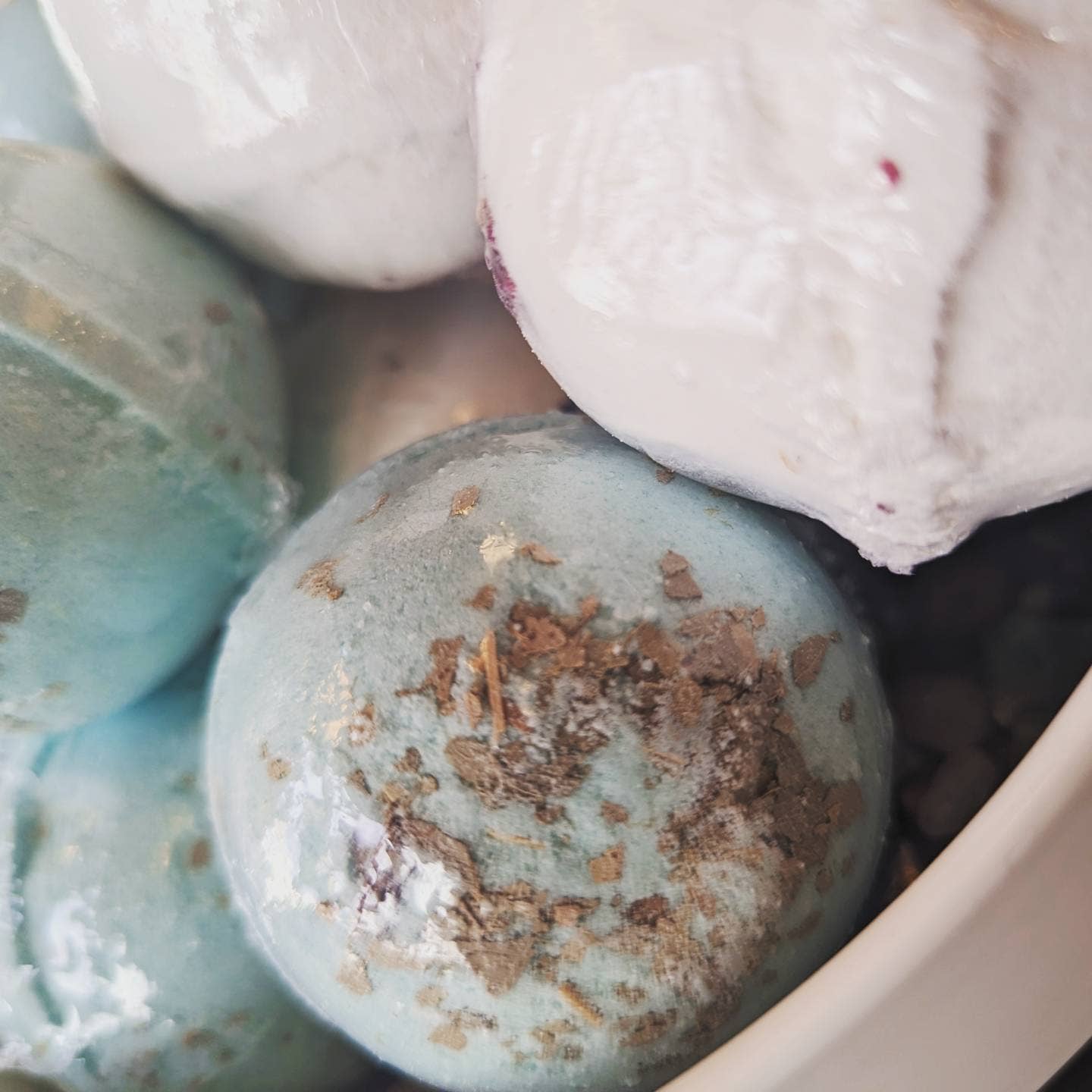 A rosy bath bomb topped with real rose petals. Made with skin-loving cosmetic ingredients and sulfate free. Ingredients: Citric acid, Baking soda, Cream of tartar, Kaolin clay, Sodium Lauryl Sulfoacetate (foaming agent), Sweet Almond oil, Polysorbate 80 (emulsifier), Witch hazel, essential oil, rose petals.