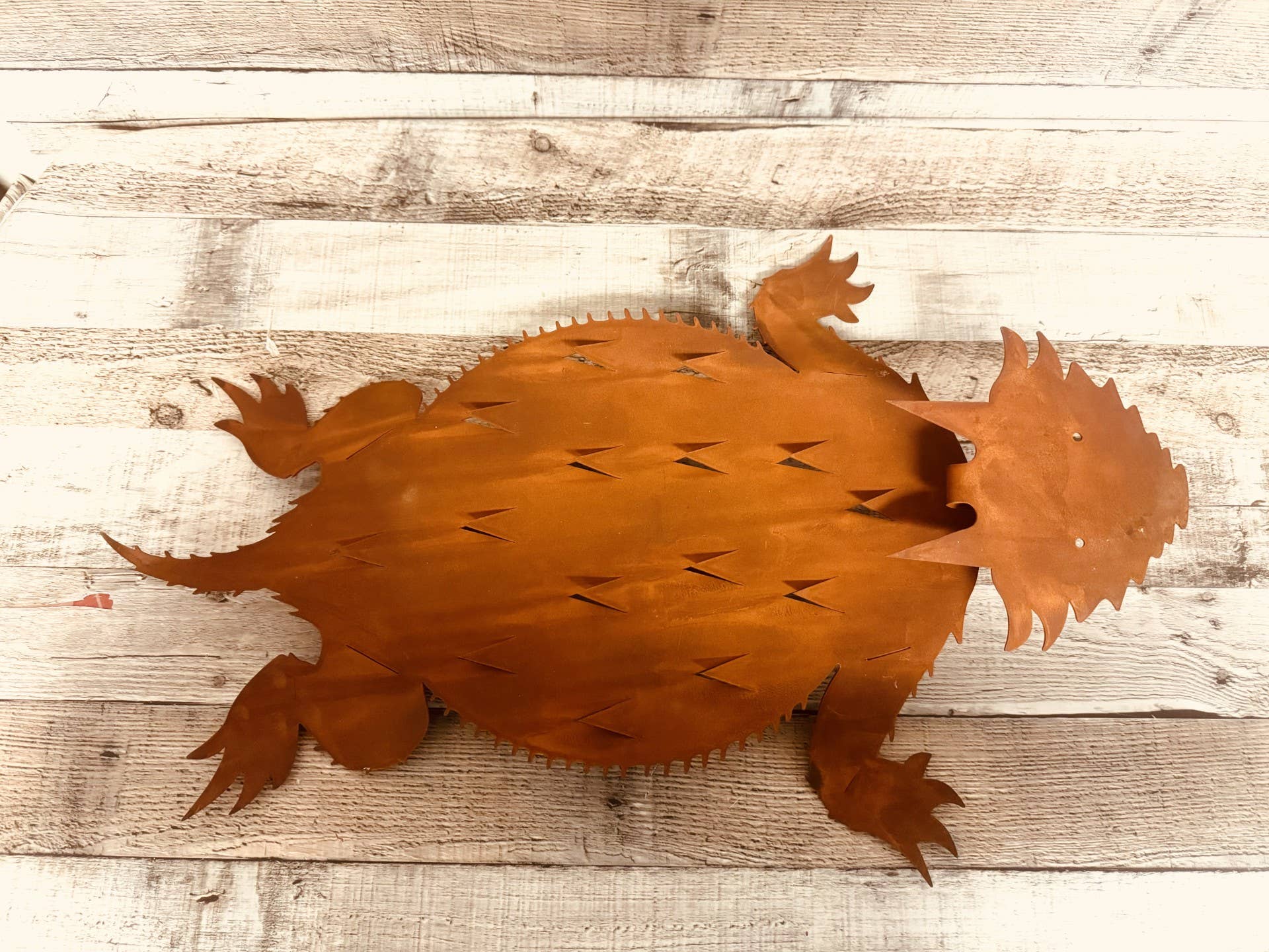 Beautiful pieces that are handmade by independent artisans. One of the most attractive features of our metal decorative items is that each single piece will have unique characteristics. * Handmade finish, Made of Metal * Dimensions: 10.5" H x 11" L x 4.5" W * Please note that our products could be made with recycled metal and may have visible scratches or imperfections due to their previous use. We strive to minimize these blemishes, but they are a natural result of the recycling process.