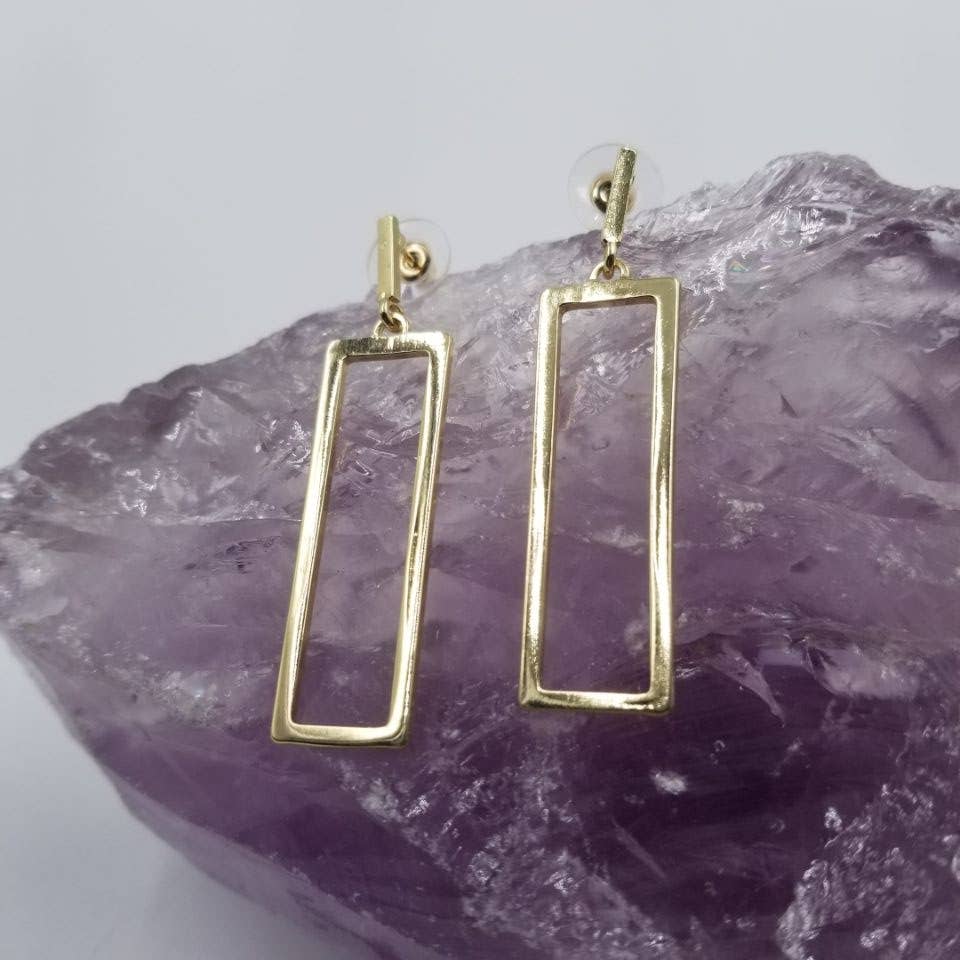 Features radiant oblong gemstones that are hand-faceted to perfection, making the vibrant colors and striations of each gem stand out. These best-seller earrings create a stunning look that's both effortless and eye-catching. 14KT gold plated brass Genuine Amethyst Stones: 1¾″ length, ¼″ width