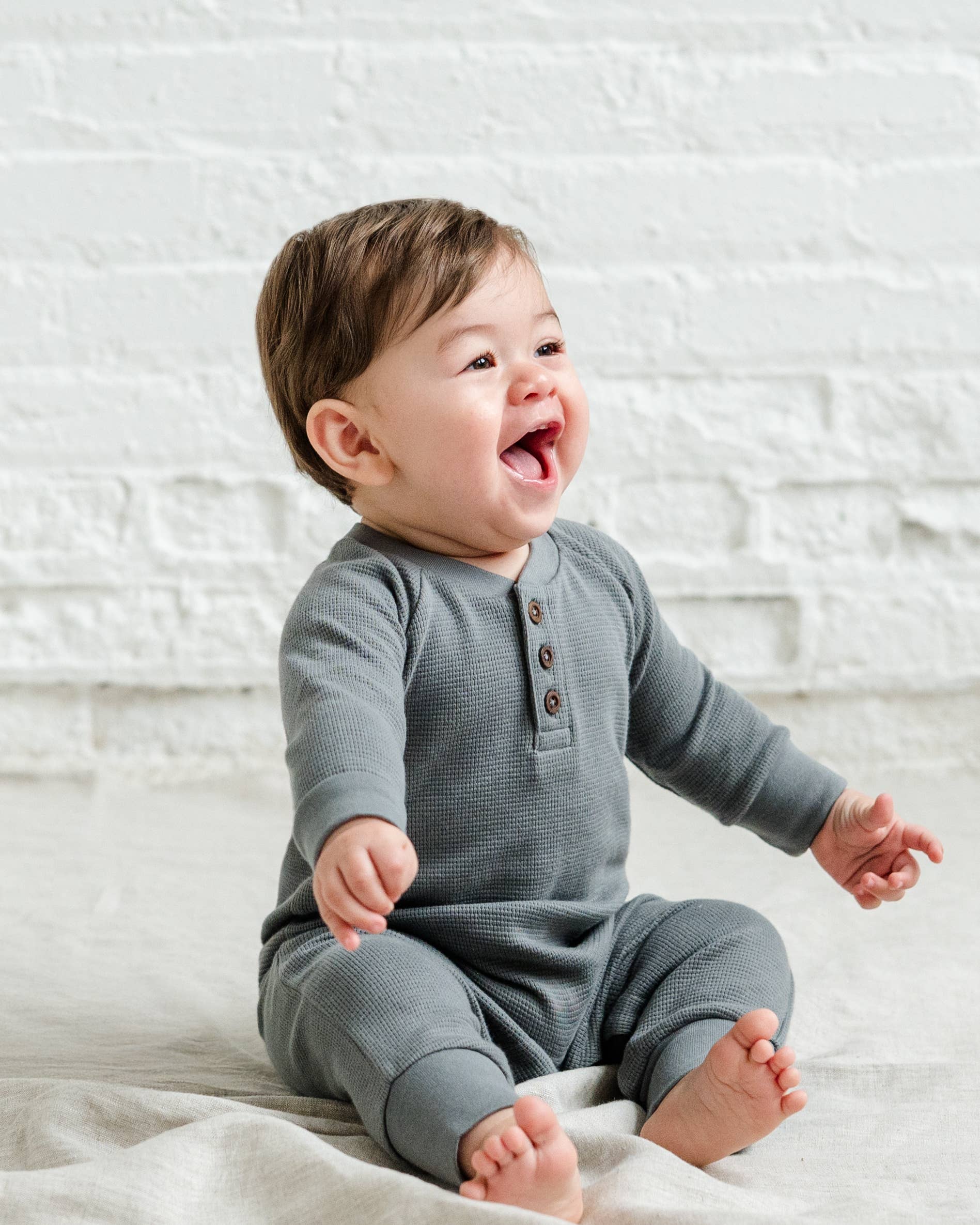 Our lightweight, ribbed long-sleeve onesie is luxuriously soft and perfect for lounging and exploring. It features two buttons down the front, leg snaps, and the dreamiest ribbed organic cotton you will ever touch. Make it a set with our matching ribbed bow (sold separately) 95% Organic Cotton 5% Spandex Machine wash on cold and hang to dry. May tumble dry on low and iron/steam.