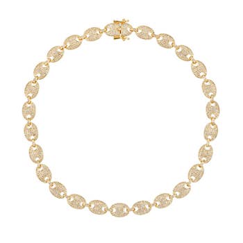 Elevate your style with our stunning Karla Tennis Necklace. This timeless piece features a continuous line of sparkling stones that catch the light with every movement. Perfect for special occasions or adding glamour to everyday outfits, this versatile necklace sits beautifully against the neckline and pairs effortlessly with any ensemble. Make a statement that speaks of elegance and sophistication. 18K Gold Plated over brass Water & Tarnish Resistant 3mm cz stones