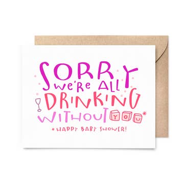 Cover: Bottle service hits different these days Blank inside Measures 4.25" x 5.5" Illustrated by hand and printed on fine art vellum card stock 100% Recycled euro flap kraft envelope included.