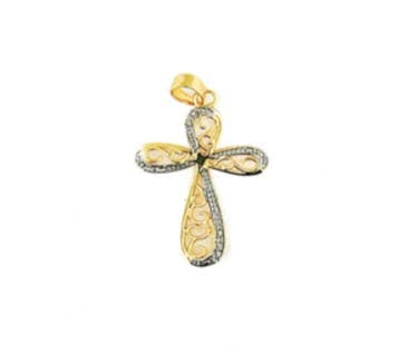 Green Teardrop CZ Gold Cross Charm, Sku#LX356