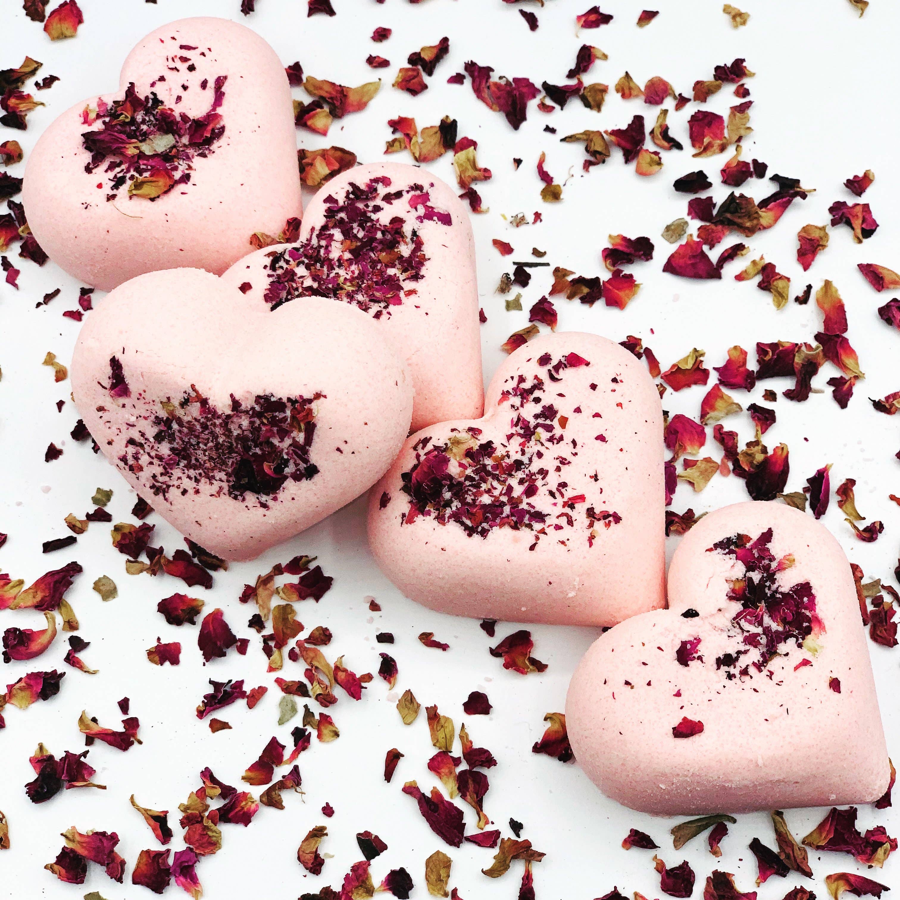 Our gorgeous little rose bath bombs are handmade at Poppy & Thyme! Scented in a beautiful sweet floral scent! Each bath bomb is individually shrink-wrapped with label on the back. Ingredients: Baking soda, citric acid, cream of tartar, olive oil, phthalate free fragrance oil, FD&C batch certified lake colorant, and mica