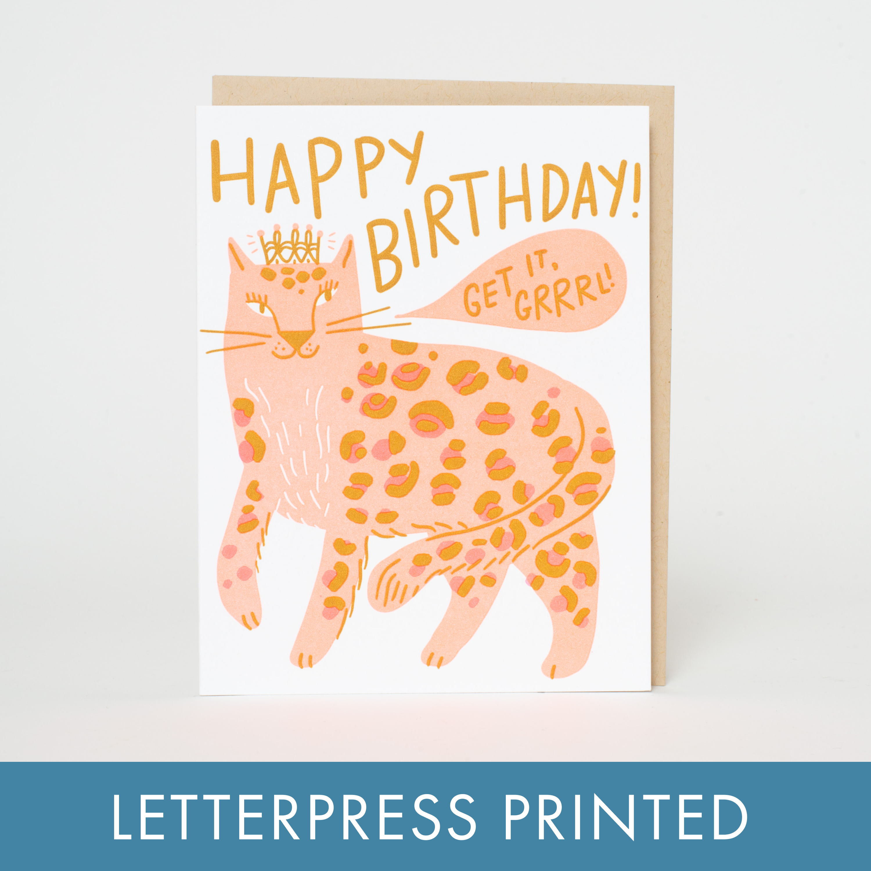Cheetah and leopard lovers will love this majestic birthday card. Perfect for the wild animal and big cat lover on their birthday. Released in January 2023 Card reads: "Happy Birthday You Majestic Creature" • Our cards are letterpress printed by hand, one-by-one in Chicago, IL EVERY week, on antique letterpress machines from the 1960’s! • Expertly pantone color-matched rubber ink letterpress printed on soft ivory recycled cotton rag paper. • Business logo and info printed on bottom back of card. • 4.25” x 5.5” size with coordinating envelope and protective sleeve See our other popular birthday cards here: https://www.faire.com/product-based-collection/pbc_g23qvgnccs Please share your Google review! https://www.google.com/maps/place/Steel+Petal+Press