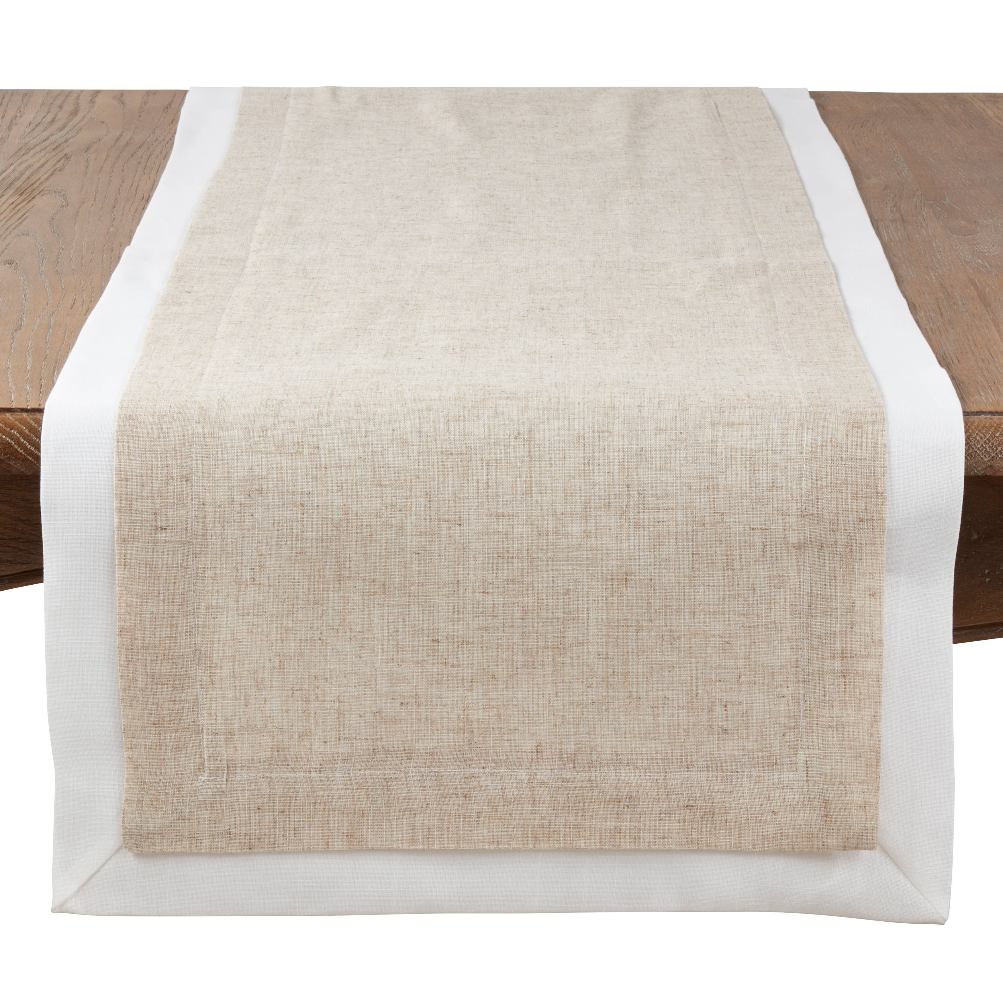 If you need a go-to runner that works for everyday meals and delivers great durability, then this Hemstitch Table Runner is the perfect choice. The natural color and the plain design make it easy to pair with a wide range of dinnerware and other table linens and fit any casual occasion. 80% Polyester - 20% Linen Cool Machine Wash, Delicate Cycle, Hang Dry, Medium Iron