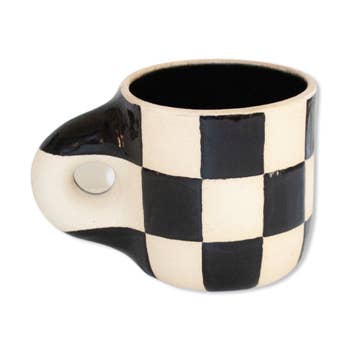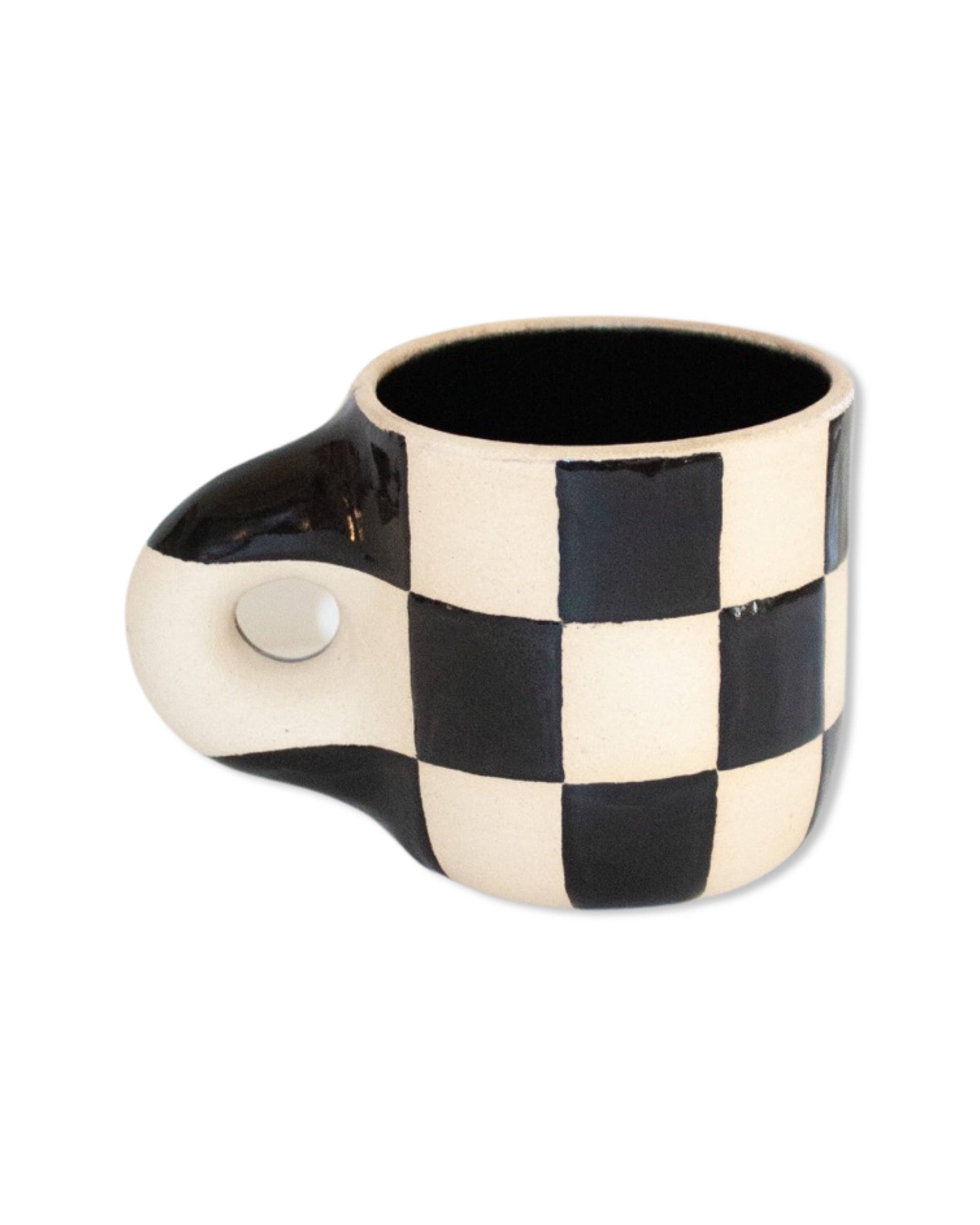 Cuss Yeah Designs Black Cream Checker Pattern Coffee Mug