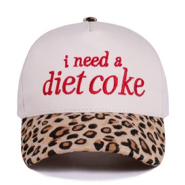 The perfect hat for any Diet Coke lover on any occasion. Fit: Hats are one size fits most, unisex, and have an adjustable snap on the back. Content + Care: OTTO cotton blend twill 5-Panel mid profile baseball cap Embroidered text on front panel "I Need a Diet Coke" Color: Red and White 100% Cotton