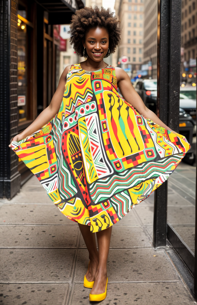 Women's Ankara Dress with Pleated Sleeve - African Prints