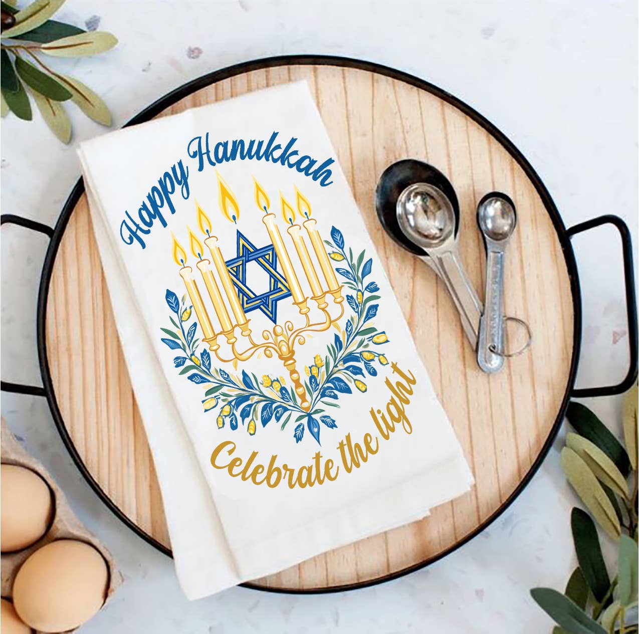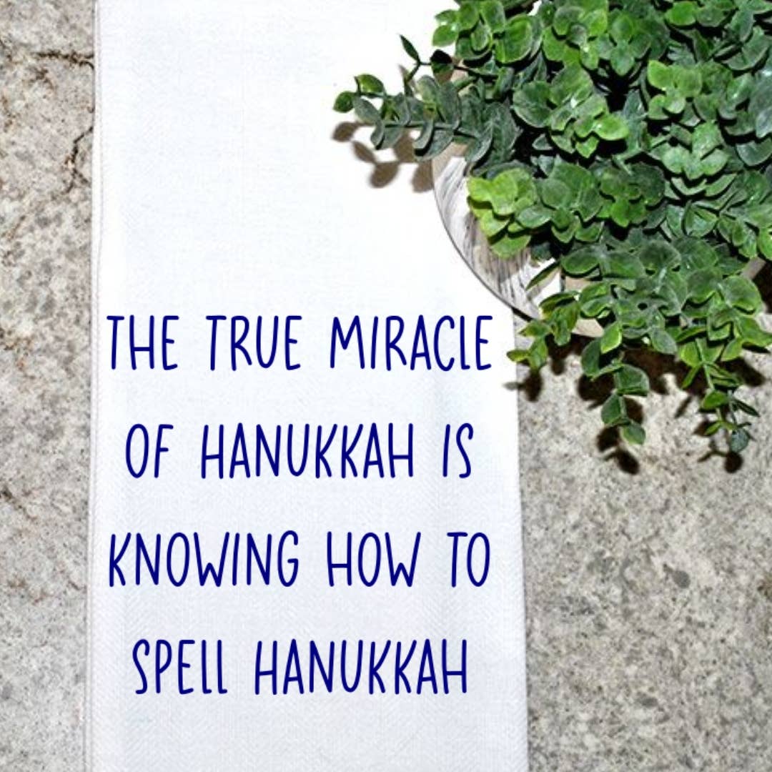 Celebrate Hanukkah with your loved one using this screen printed towel. Use it in the kitchen for your dishes or as an accessory as a hand towel in your bathroom. Perfect as hostess, holiday, housewarming, birthday or anytime gifts. Towels measure 28x28 and are 100% cotton. As with the nature of flour sack towels, they are imperfectly perfect. They are naturally soft and wrinkly and will soften further with each wash. Screen printed in NC. Product Name : YOU ARE THE HAPPY IN MY HANUKKAH, SENTIMENTAL HANUKKAH KITCHEN TOWEL