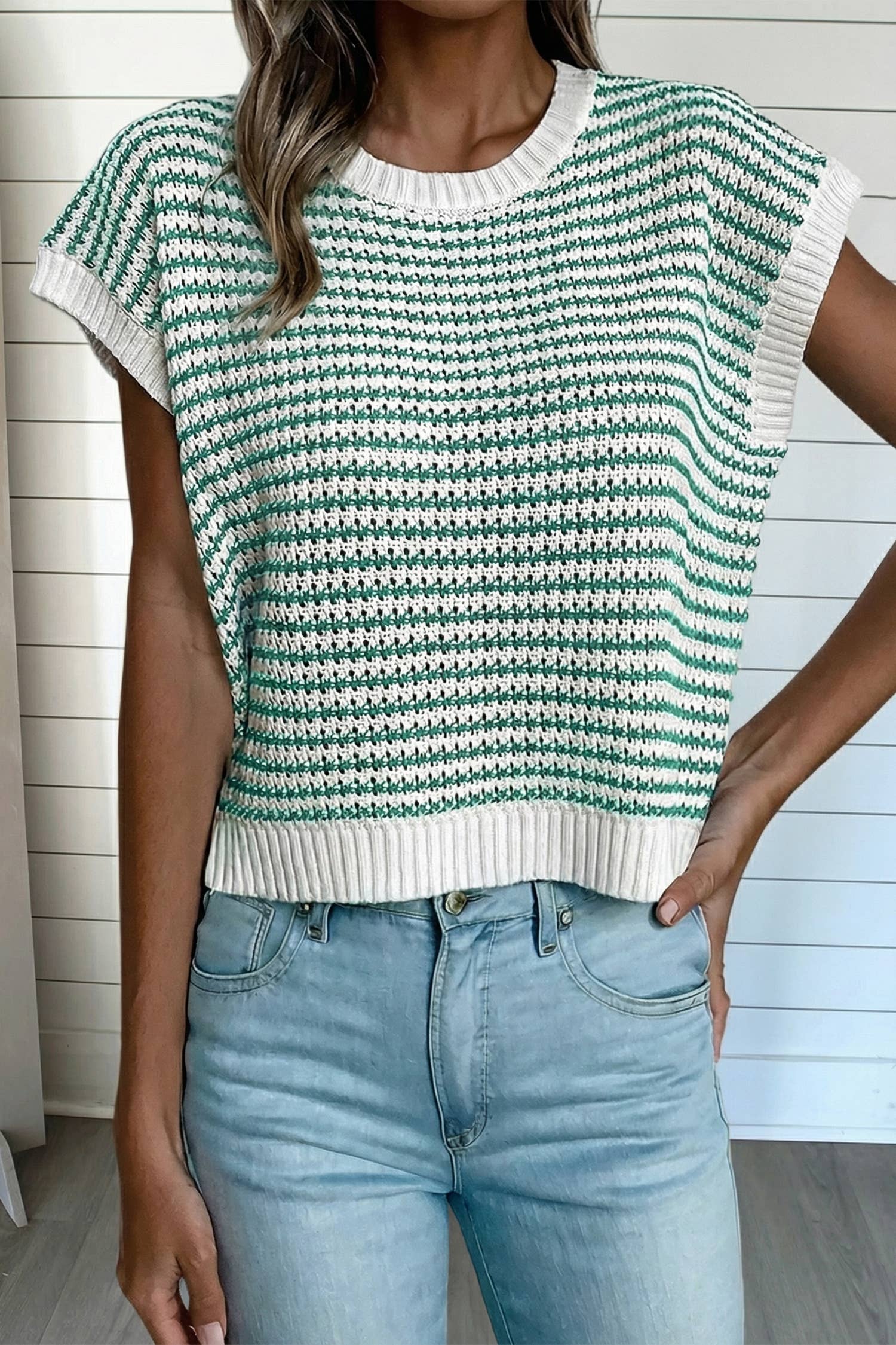 Model & Fit Model: Morgan (5' 5" and Size 2 or XS) is wearing our S/M Mariah (5' 5" and size 4 or M) is wearing our S/M Relaxed Fit Unlined High Stretch Button Closure Sequin Bunny Details Varsity Stripe Ruffle Sleeves Fabric & Care Material: 65% Cotton 35% Polyester Care Instructions: Hand Wash with Cold Water, Do Not Bleach, Hang or Line Dry Manufactured Overseas Bust Body Length Sleeve Length S/M 42 16 N/A L/XL 36 16 N/A 2XL/3XL 50 16 N/A