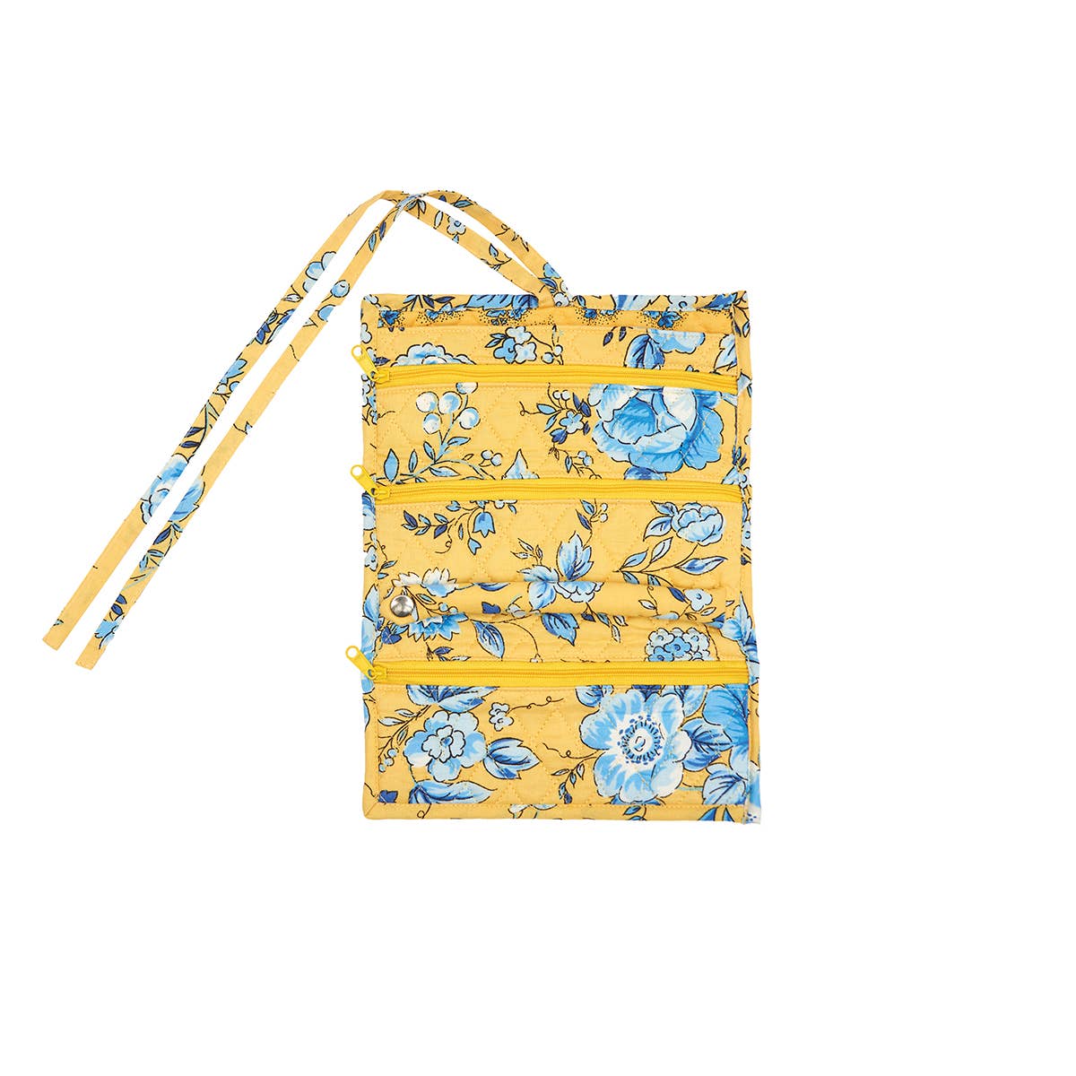 A smaller version of our best-selling Wayfarer Jewelry Roll Organizer Case! This zip folder is the *perfect* spot to store your jewelry when you're on-the-go. Earrings hang on the left, zip pocket below for rings/bracelets, and organize your necklaces on the right side: just snap them in, tuck them under the elastic, and put the pendant in the pouch so you can travel tangle-free! Made from handwoven organic cotton and screen printed with eco-friendly dyes. Measures 4.5" x 6.5". Learn more about the women who make the bags in our Cambodia Collection.