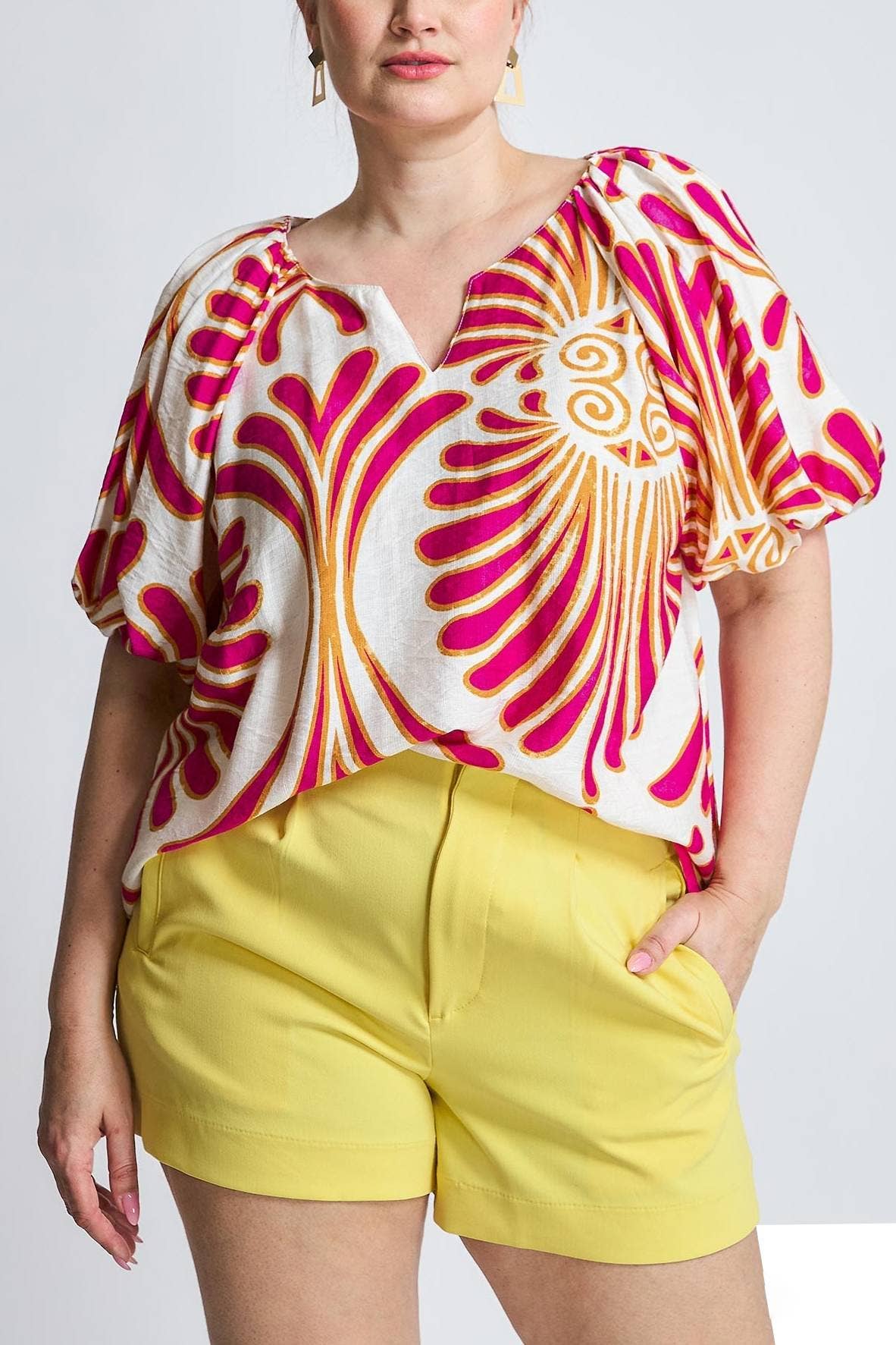 This Impulse California Women's Mandarin collar top brings a touch of the far east to your wardrobe with its textured light fabric that is wrinkle free and washable. A must have for any trip and it comes with the print called Blueberry Lemon which gives an illustration of the shades of blueberry and lemon on a white background. Made in the USA.