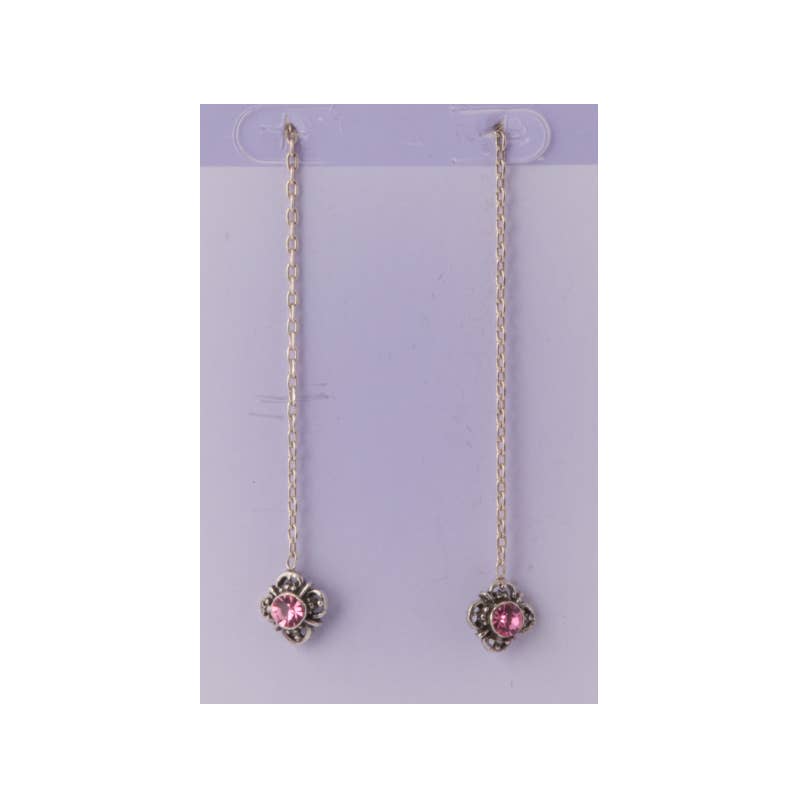 You'll fall in love with these sweet flower earrings. Centered by an Austrian crystal and framed with enamel, they dangle from hinged ear wires in six summer colors. Plated in sterling silver. L: 1” W: 3/8”
