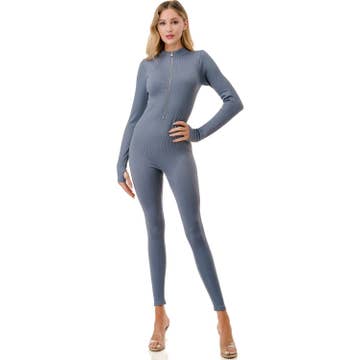 J7095 Mock Neck Nylon Jumpsuit