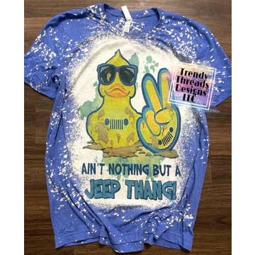 Duck Duck Jeep graphic screen printed as shown on the Bella and Canvas shirt color of your choice. A super soft and comfortable unisex fit cotton tee that runs true to size. Handmade in my small boutique in Easley, SC where I am a wife, mom of 4, and teacher. Thank you for supporting my small business.