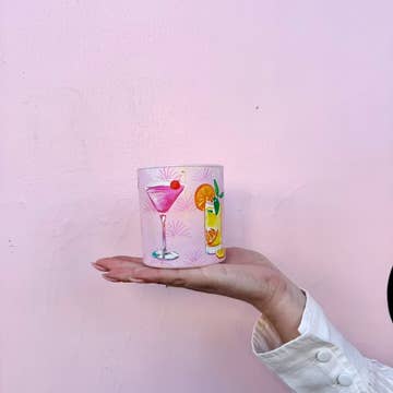 Showcasing a modern architectural paradise this candle features sleek villas surrounded by lush greenery, palm trees, and a backdrop of majestic mountains, evoking a serene and luxurious ambiance.