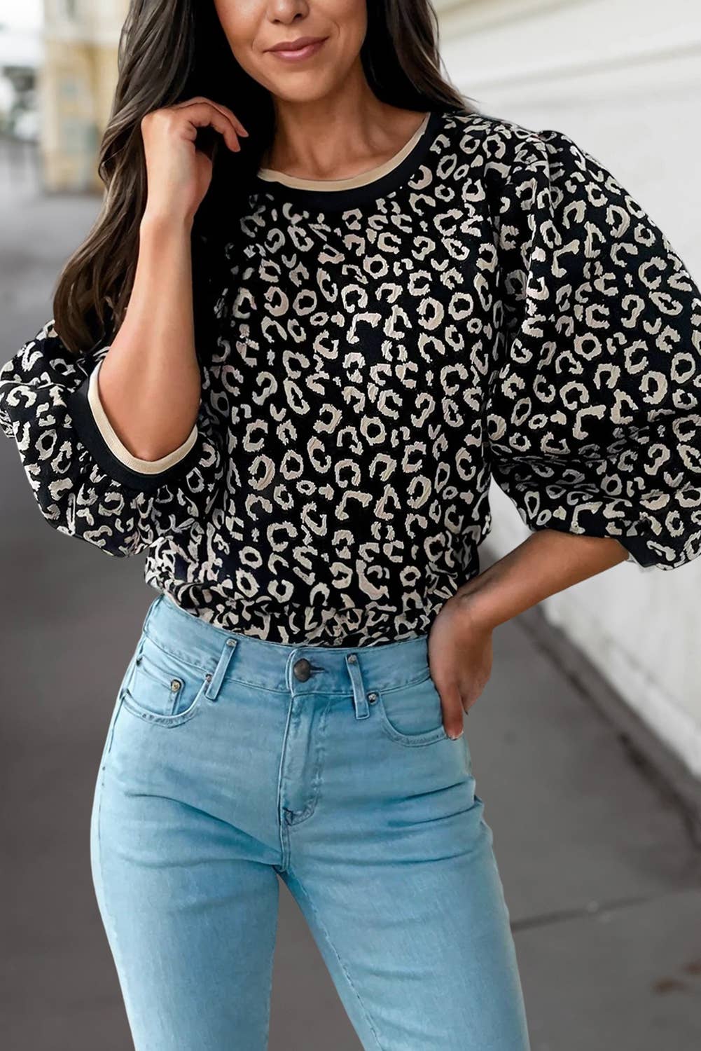 Wholesale Geometric Print Lantern Sleeve Top