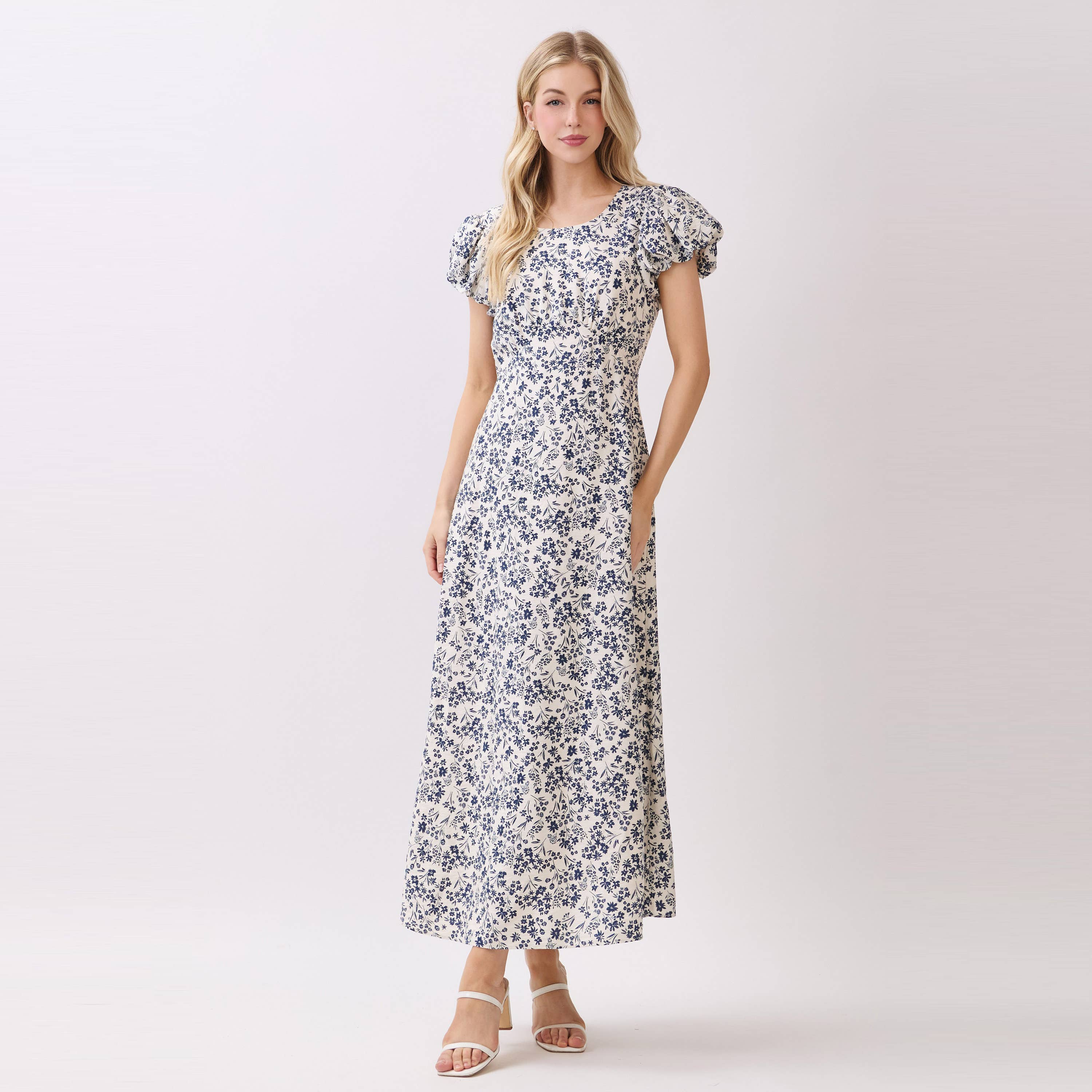 Material: Polyester Design: All-over floral print Sleeveless silhouette Floor-length skirt Color: Blue Why Retailers Love It The lightweight polyester fabric offers easy care for daily wear while the maxi length provides versatile styling from casual to formal occasions. Retailers value the single-color inventory simplicity with proven demand for floral prints in summer seasons.