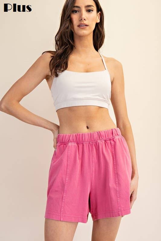 NP70758X-PLUS SIZE Washed Chambray Denim Casual Shorts