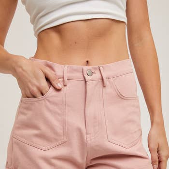 - Washed Soft Knit Cargo Bike Shorts - 2000era, Y2K, Utility Pants - Side Pockets - Stretchy - Activewear - Athleisurewear - Workout Shorts - Basic Essential Style - Basic Wash Style - Spring Wardrobe Essentials Style (Model height: 5'7", wearing a Small, 2-2-2 Size Ratio)