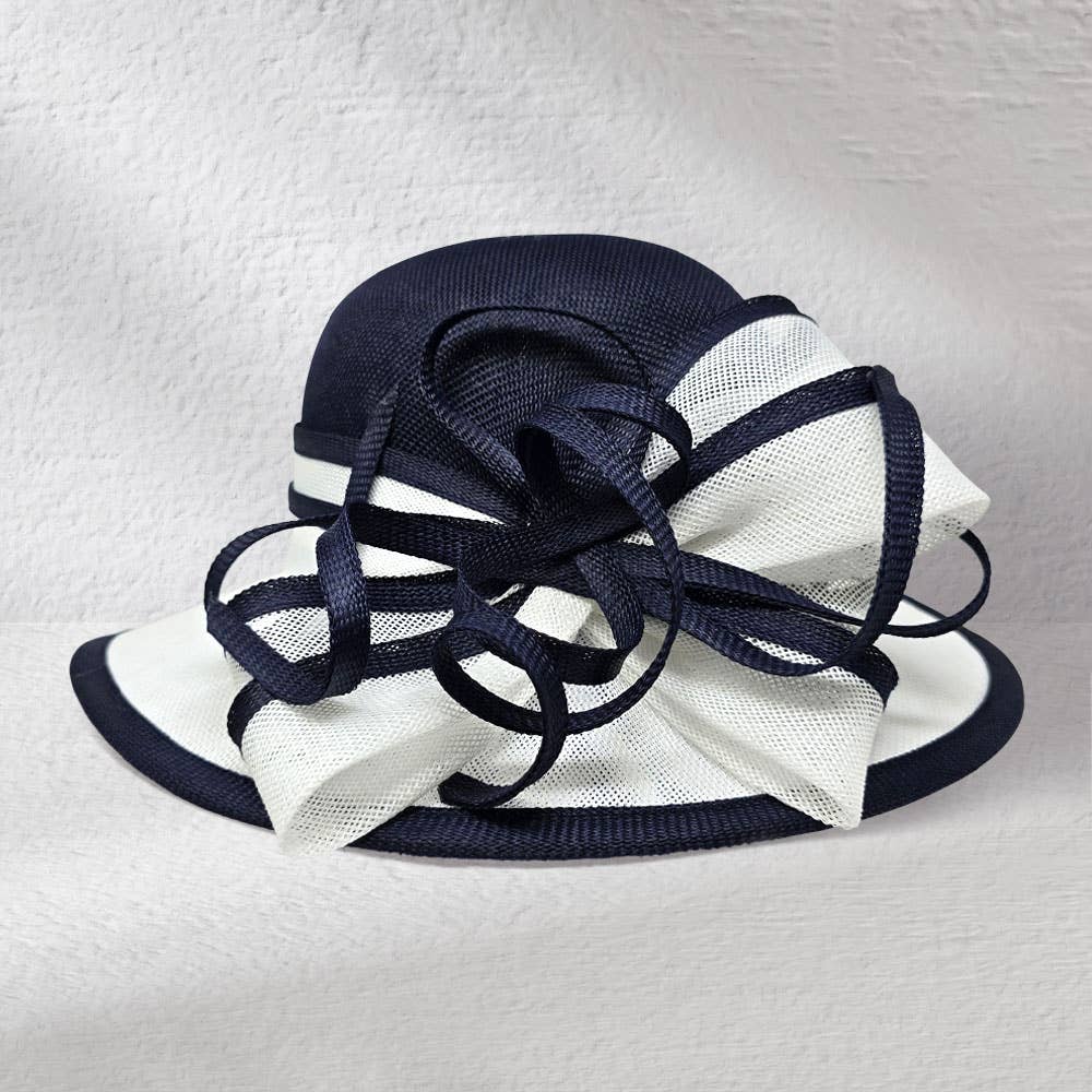 Double Layer large sinamay floppy hat perfect for summer and spring, this 2 tone adornment is colorful, feminine, and enveloped in an abstract swirl bow. Available time for Olive/Ivory, Black/white and Orange/Red: First week of March 2023 Available time for Navy/Pink, Dusty Blue/White and Turq/Grey: Third week of March 2023 Material: Sinamay Head Size: 22 1/2 inch Brim size: 7 inch Handmade Item. Item Ships from Cranford NJ, USA. Origin: Made in USA with imported material Color on screen may vary from actual merchandise due to monitor restrictions or dye lots.