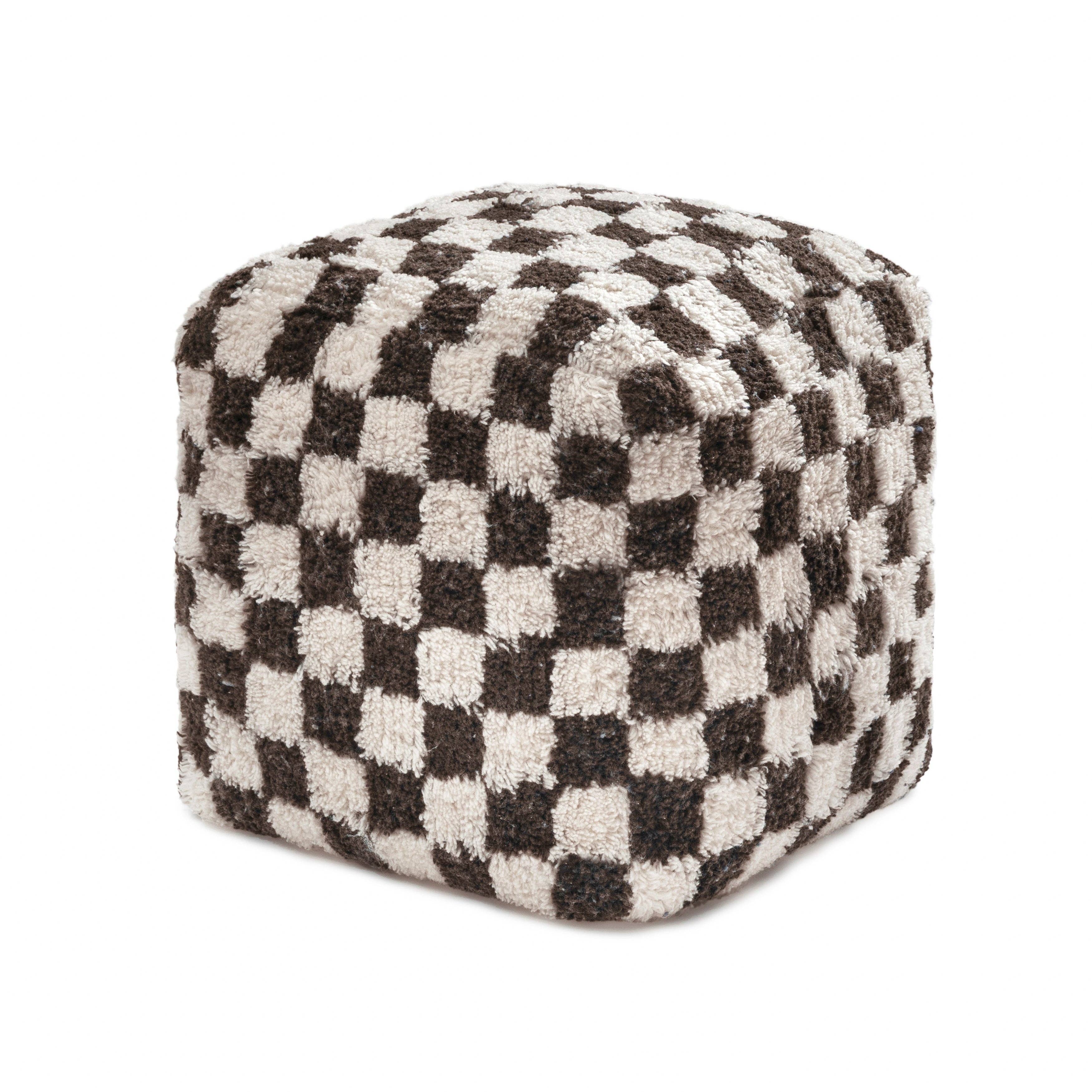 Handmade Azilal Pouf – Wool & Cotton – Moroccan Artisan Floor Cushion – 70 x 70 cm Bring Moroccan artisanal charm to your home with this Handmade Azilal Pouf. Crafted from a handwoven rug, the top features a classic checkered pattern while the bottom is made of durable cotton, offering a neutral and timeless design suitable for any interior. Each pouf is handmade by skilled Moroccan artisans, ensuring every piece is unique with slight variations in size and pattern. Delivered without filling, it can be easily filled with foam, beads, or recycled materials—just like traditional Moroccan poufs—for an eco-friendly and cost-effective solution. Purchasing this pouf supports local artisan communities and preserves traditional craftsmanship. Product Information: Dimensions: Approx. 70 x 70 cm Material: Wool and cotton Color: Ecru and old pink (handmade variations may occur) Handmade: Each pouf is unique with artisanal variations Filling: Not included; fill with foam, beads, or old clothes Care Instructions: Dry clean only Uses: Floor cushion, seating pouf, or decorative accent This Handmade Azilal Pouf combines authentic Moroccan craftsmanship, functionality, and timeless style, making it a versatile and charming addition to any living space.