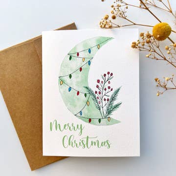 From our Holiday series. Some are serene. Some whimsical. But these greeting cards are guaranteed to enchant your customers. Each greeting card is 4.25" x 5.5" (A2) and is blank inside. The card comes packaged in a plastic sleeve with a metallic green Peel & Press envelope that was selected by the artist to complement the palette of the artwork. The title of the piece is printed on the back of the card. The envelope is packaged inside the card so that the title is visible on the back.