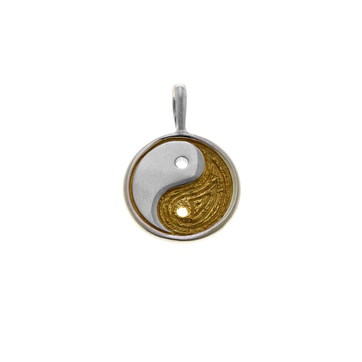 YIN YANG (Dark and Light) The Yin Yang sign is perhaps the most important symbol in Chinese culture. It stands for the interpenetrating of all opposites. Yin stands for the Earth, the Moon, darkness, quiet, the Female, absorption, and receptivity. Yang stands for the Sky, the Sun, sound, penetration, and the power to send out. It is said that the Universe began with the Great Ultimate first cause, out of whose movement Yang first appeared. When it had moved to its height, it rested, and out of that rest, Yin arose. Together, Yin and Yang comprise the Tao, the eternal mind of heaven and earth, the origin of all things, human, divine, earthly and celestial. Sterling Silver. Made in Thailand.