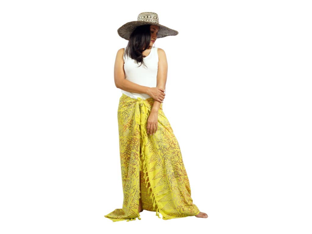 Our beautiful batik sarongs are for everyone. They are designed to be worn in a variety of ways, you can wear them as a skirt, wrap, or cover-up—the possibilities are endless! Our sarongs are handmade with a batik stamp technique on rayon fabric. Each piece is unique and may contain color variations and imperfections. Since each sarong is handmade and slightly different in color and pattern. Please check the pictures to gain a better idea of what each one looks like—we try to capture it as close to the sarong piece as we can. Each sarong is a soft, light piece of art, and the actual pieces are more gorgeous than we captured in pictures. DETAILS: .: Size 110X 170 cm (43.3 X 66.92 in.) .: Handmade in Bali .: Lightweight .: 100% Rayon fabric .: Multicolor batik design .: Silky smooth .: Breathable and cooling fabric Bulk F.O.B Indonesia and O.E.M available upon request Buy more to save more!