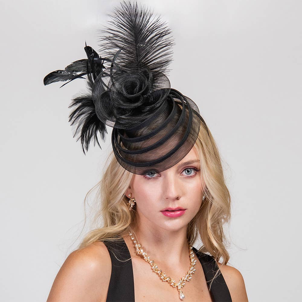 Mini Black Top Hat with Peacock Feathers