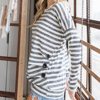Striped and color block design makes the shirt more casual and stylish Waffle knit details makes the shirt more delicate and chicer With the buttoned design, the shirt is easy to wear on and take off Long sleeve top is easy to pair with jeans, sneakers, handbags for a trendy outfit Brand labels are not included by default. If needed, please add them via this link ($0.50/pc): https://www.faire.com/product/p_mbyt838sy8