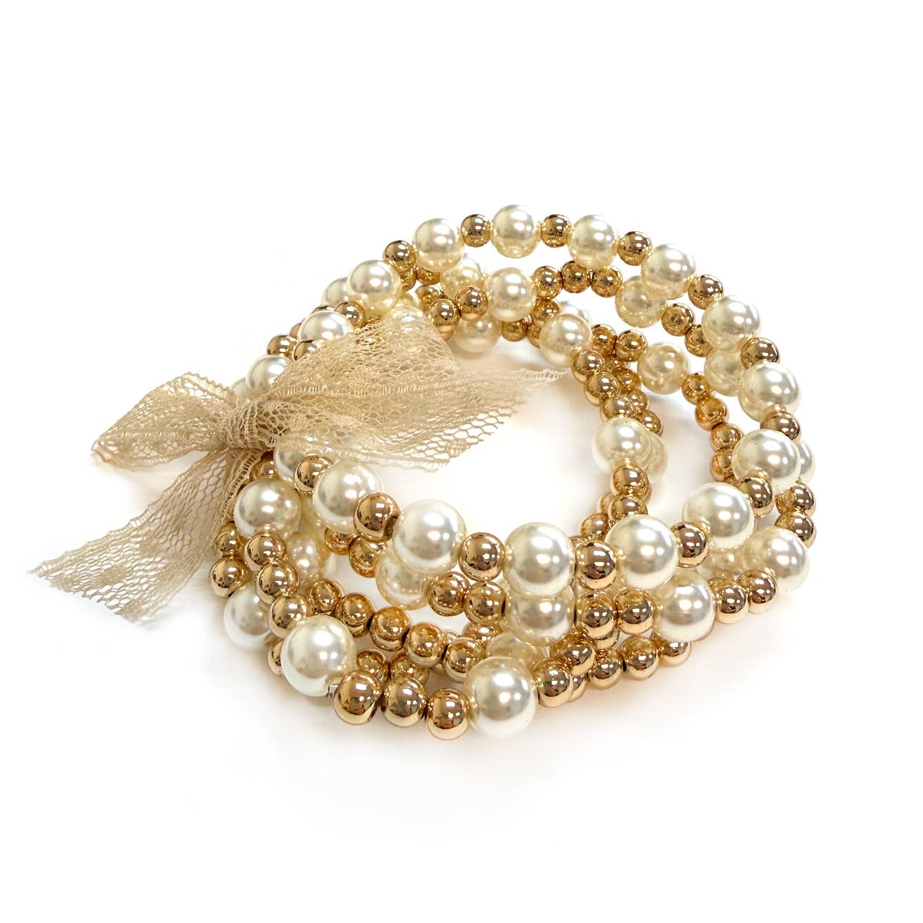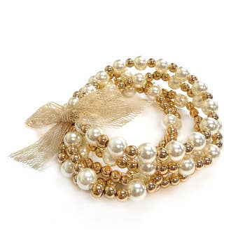 Size : 0.5"H, Stretchable 3pcs/set Freshwater Pearl Multi Layered Beaded Stretch Bracelet Available By GOLD : 12/09/2024 MAT GOLD : 12/09/2024