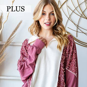 HEIMISH - Wholesale Sweatshirt - Women's - ET6837-10 SOLID WAFFLE AND SEQUINS TOP8