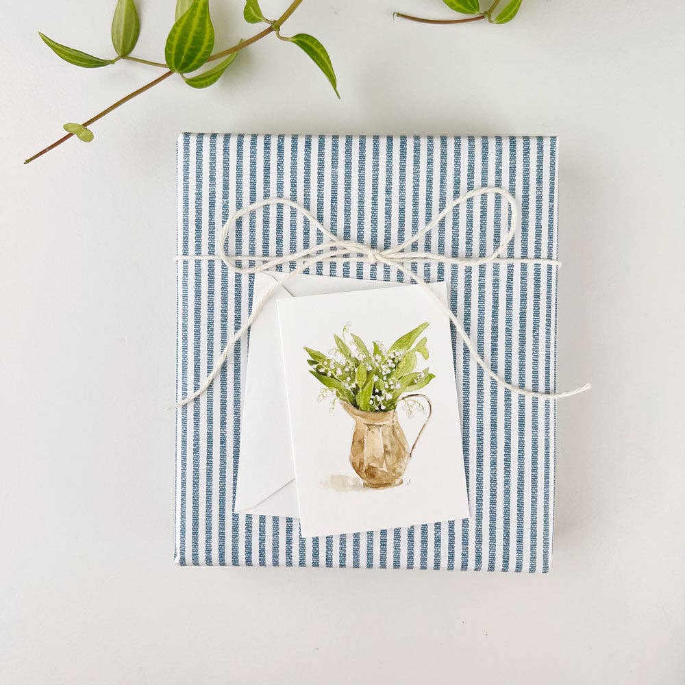 A mini notecard for petite greetings. Perfect for adding to a gift or popping in a gift card for a pretty presentation. Details: - single card + envelope - blank inside - 2.5" x 3.5" - Printed on 120lb superfine paper - Original watercolor artwork by Emily Lex