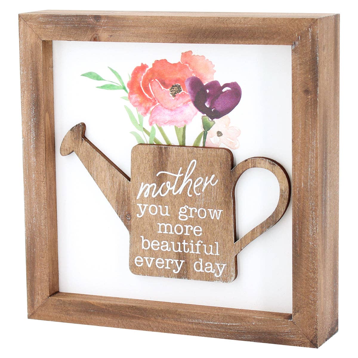 Measurements: 5 1/2" W x 5 1/2" T x 3/4" D "Mom, you are amazing" Carved Watering Can with Flowers