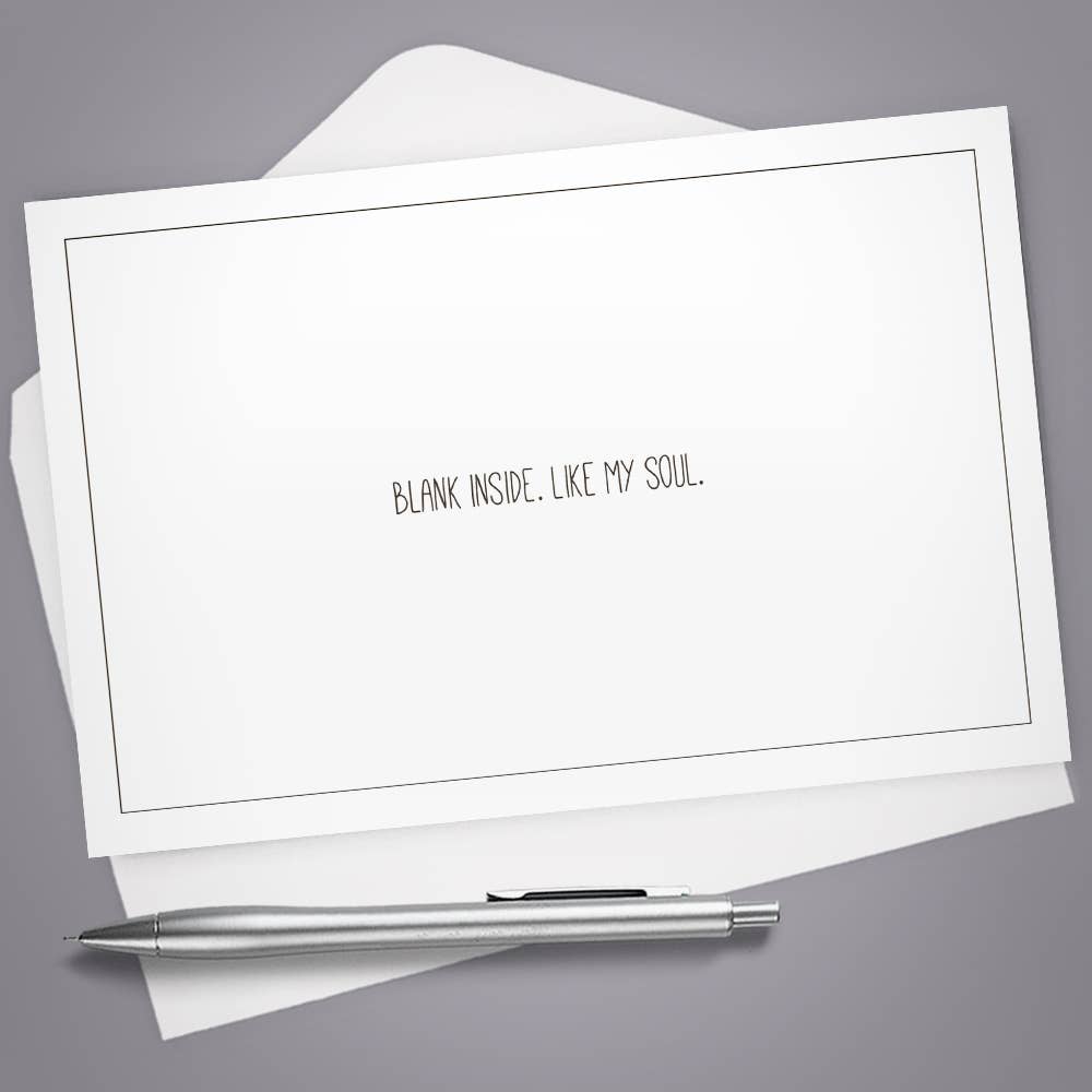 OUTSIDE: “I just want somebody to love.” INSIDE: Blank inside to confuse people or a spot for a nice note. These hilarious cards with envelopes come in sets of 8 and are printed on smooth, bright white, heavy weight card stock. The cards come folded and blank on the inside. The cover artwork is dark gray, and is mostly from a collection of vintage illustrations, but some are original art created by myself, the shop owner. They are designed by me and printed at a local small business print shop. These cards are great for those buyers with a unique sense of humor who know their crowd. Details: - Set of 8 cards - Size: 4” x 6” - Each set comes with the same amount of A6 envelopes - Folded card, 100lb heavyweight card stock - Blank on the inside