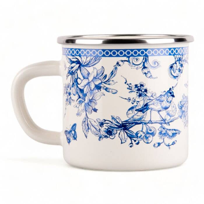 Blue & White Dragon Print Mug With Lid
