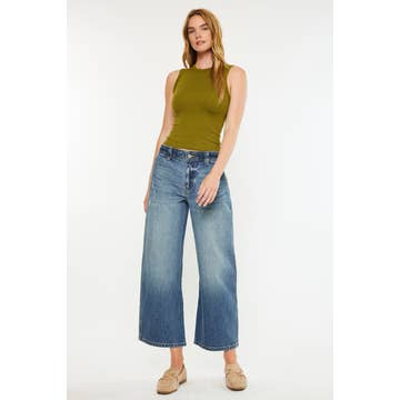 HIGH RISE RAW HEM WIDE A LINE JEANS T6596