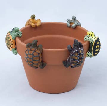 A handbuilt red earthenware wall planter, painted with a gorgeous white "slip", and hand-carved with "Geotriangle" surface design in the technique of sgraffito. This organically shaped ceramic wall pocket is the perfect vessel for succulents, cacti, trailing ivy, herbs, or any small plant, adding some vertical greenery to any space. Hang from a hook or nail from a sturdy wall and group together to create an eyecatching indoor garden. This planter has a glazed interior for added durability and features a small hole for drainage. Measures approximately 7" long x 4" wide x 4" deep. Hand wash. Please note that you are buying a handmade product, meaning these pieces are one-of-a-kind and will vary slightly from the original listing photo.