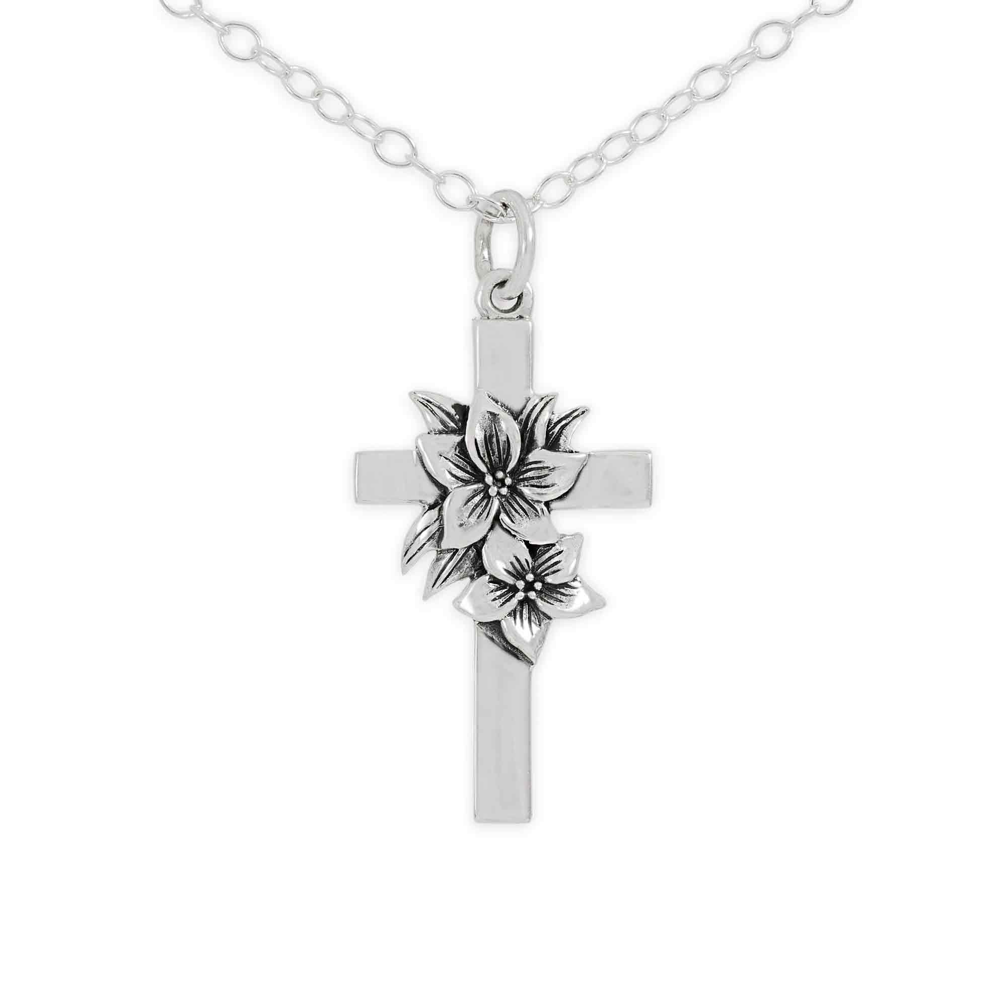 Floral Cross Necklace, Religious Jewelry