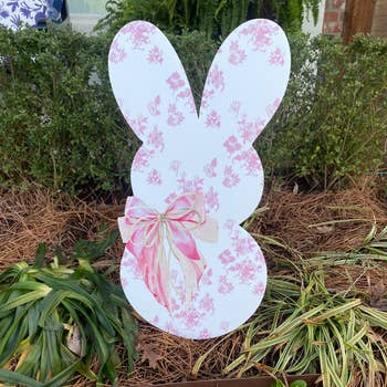 Add some color to your Spring landscaping with these gingham bunnies! They come in pink, lime green, purple, coral, yellow, and carolina blue. Each bunny is 28 inches tall by 16 inches wide. They are printed on a durable corrugated board and include a set of 12" stakes.