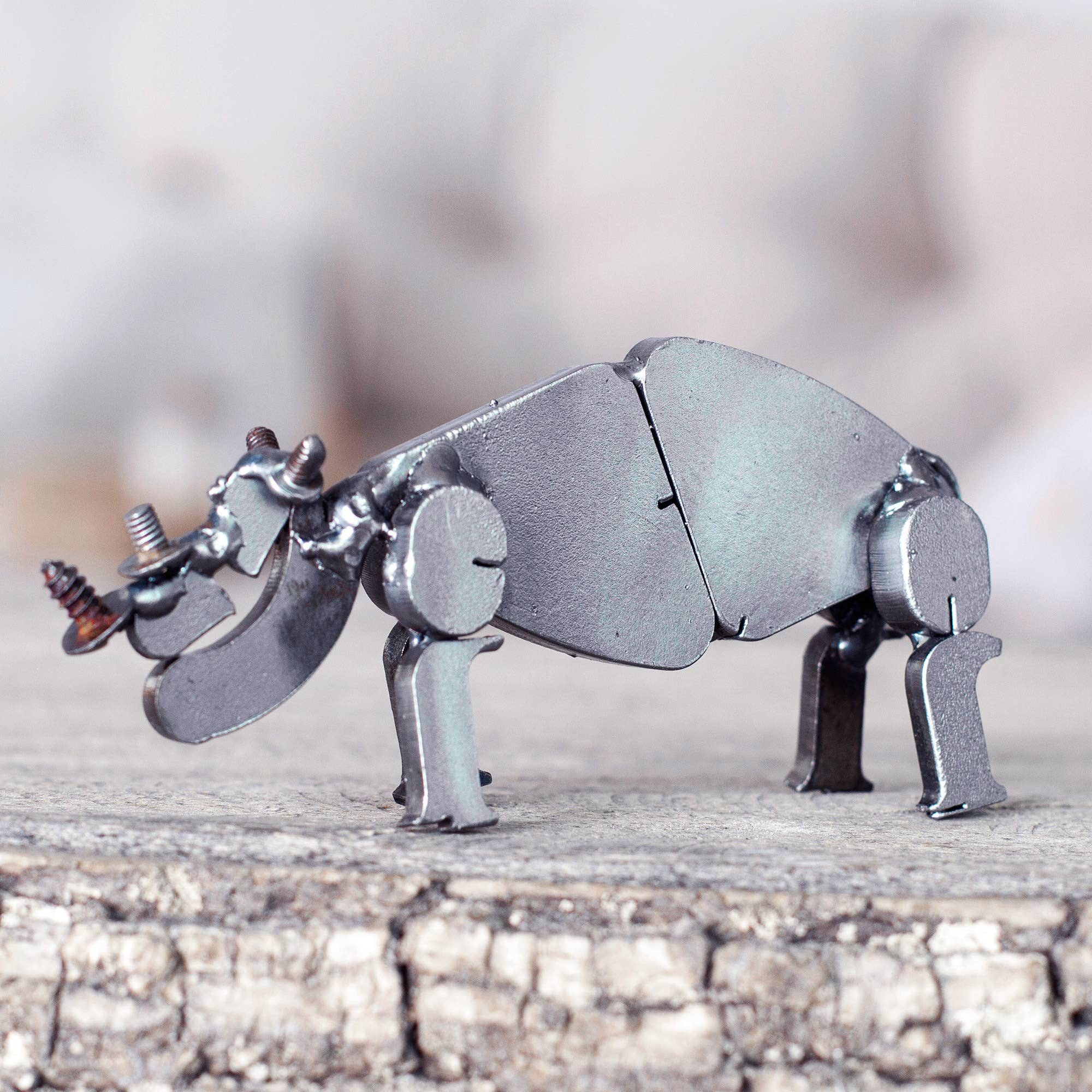 A Zimbabwean metal sculptor named Kelvin crafts these cute pig sculptures from recycled metal in assorted colors, including red, blue, white, and green. A fun addition to the yard and garden, each sculpture is finished with varnish to protect against the elements. Sold singly. Weathering is to be expected if the sculpture is exposed to elements over time. Because this is a handcrafted item, each will vary. Dimensions: 6"L x 3.5"W x 3.5"H Crafted from: Recycled metal Made in: Zimbabwe