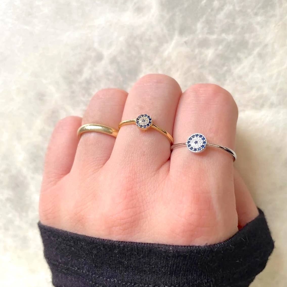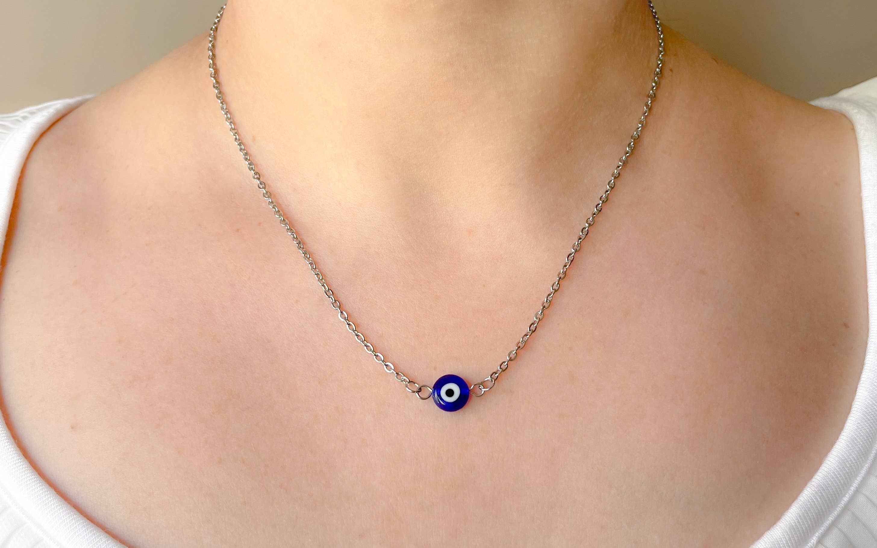 Evil eye jewelry takes on a modern look with this stainless steel chain bracelet in gold and silver finish. This design features a row of two-loop evil eye beads linked together to create a gorgeous specialty chain with a lobster claw clasp and a 2" extender for a comfortable fit. Perfect protection bracelet to gift. Material: Stainless Steel (non tarnish) Length: 6+2" FREE RETAIL-READY PACKAGING Each item is carefully packaged for a polished presentation. Earrings come on off-white square cards featuring our logo (BEJ or Blueye Jewelry) and the material (stainless steel or sterling silver). Necklaces and bracelets are packaged on small cards with our brand name on the front and material on the back, then placed in long white polybags. Rings are packaged WITHOUT cards in zipped bags with size stickers. If you prefer to use your own cards, please let us know, and we will package your items without using our branded cards. *We offer personalization. Please contact us to customize your pieces.