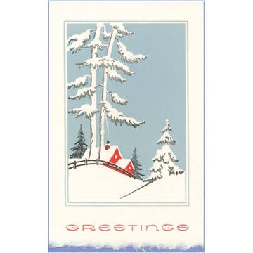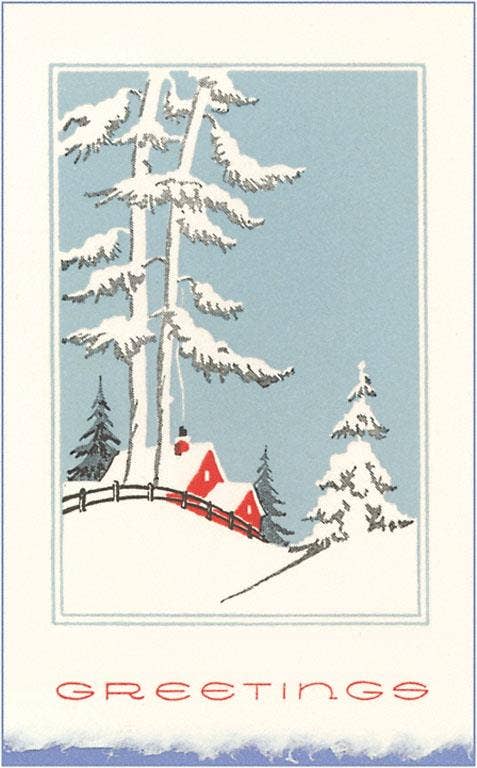 Winter Village - An illustrated art print of a snow-covered village on a hillside. Many cozy homes are tucked into this cozy piece depicting a bright winter day after a fresh snowfall.