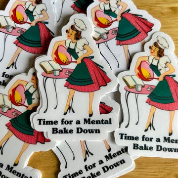 Having a mental bake down vinyl sticker, bakers merch