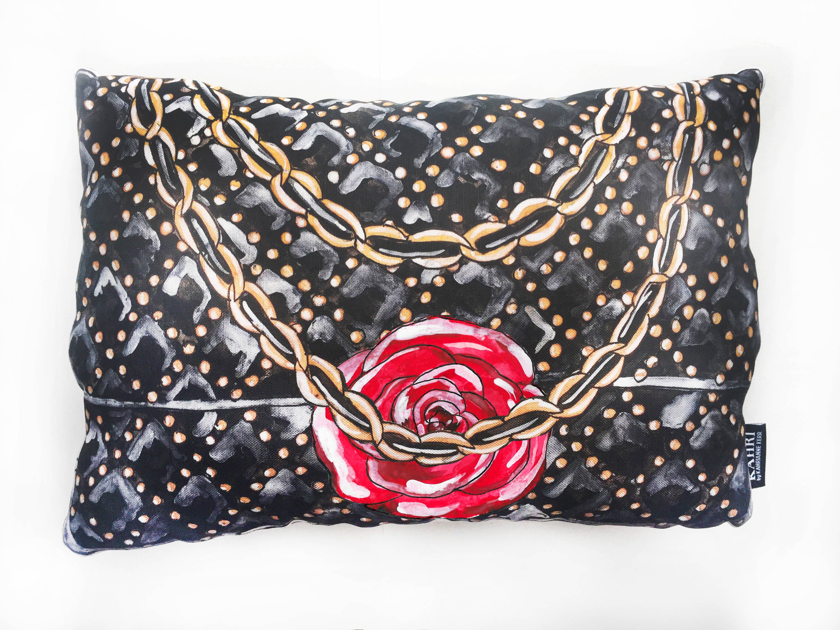 The Ciao Bella Pillow by KAHRI is a decorative pillow that features a stylish and whimsical design with a nod to Italian culture. The pillow is made of high-quality cotton/linen fabric that is soft and comfortable to the touch. The design features a vintage-style Vespa scooter in a soft mint color, with the phrase "Ciao Bella" printed on the side and a cat eating gelato. The background is a crisp white, making the design pop. This pillow is perfect for anyone who loves Italian culture, vintage-style design, or Vespa scooters. It can be used as a decorative piece in the living room, bedroom, or any other room, and is sure to add a touch of whimsy and charm to the space. Digitally printed original artwork by KahriAnne Kerr on cotton/linen fabric. Solid black linen back. Size 15" H x 13.5 "W. Poly Fill inside. Printed with eco-friendly inks in the USA. Made with love in NYC.