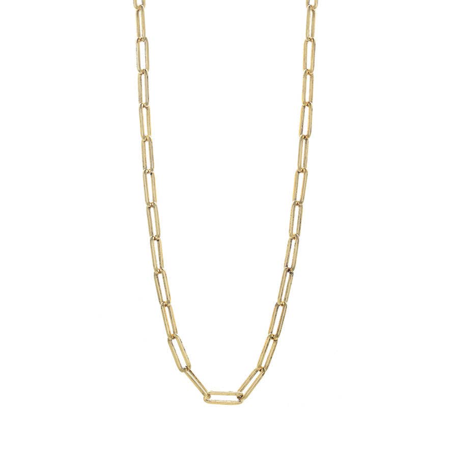 ADJUSTABLE GOLD PAPERCLIP CHAIN NECKLACE This stylish paperclip necklace is plated in 24k gold with a high polish finish. The Ricky chain is lightweight and goes with any look. With an extension added, this versatile necklace can be worn in different lengths which is made perfect to be stacked with your favorite necklaces! Materials: Stainless Steel, 24K Gold Plated Measurement: 15" length + 4" Extension. Total Length: 19". Chain width, 4mm Closure: lobster clasp Additional Info: * Hypoallergenic: The base is surgical stainless steel * Eco-friendly: We use recycled silver and gold! * Tarnish resistant: No worries about color fading here. With proper care, this piece will last for years! See our care section for more details. All of our gold jewelry is plated with recycled gold. Each piece is coated using the highest grade technique, which is made to be more 8 times more durable than traditional gold-plated jewelry.