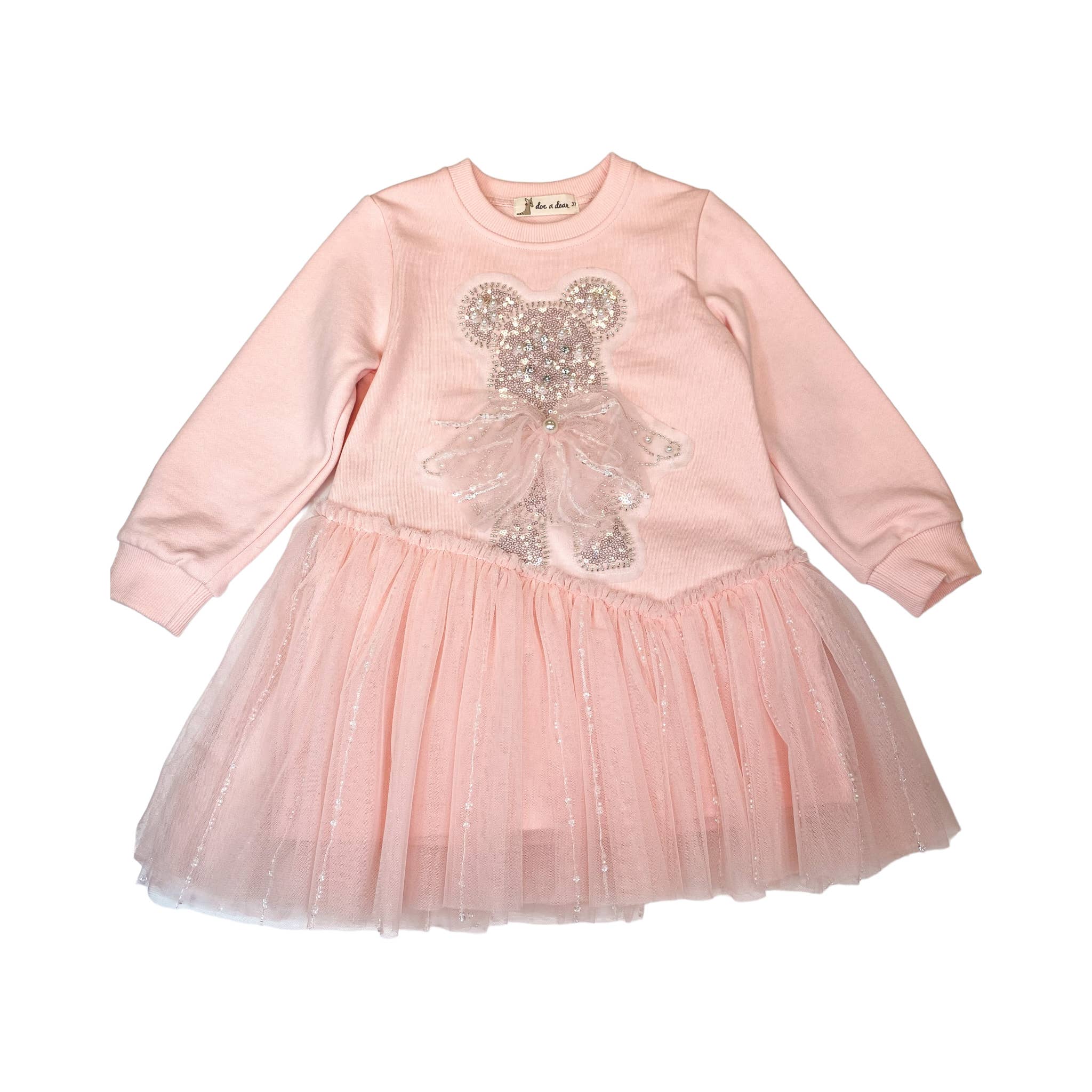 Make a statement in this exclusive dress, designed with a tulle layer and finished with eye-catching pearl details. Available in pink and black! Shell: 95% cotton, 5% spandex